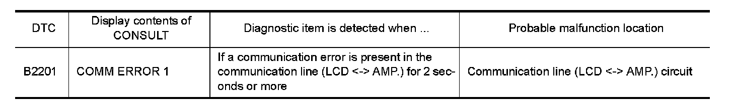 The communication line (LCD <-> AMP.) is used to communicate signals between the combination meter and the unified meter and A/C amp. in order to control the information display.