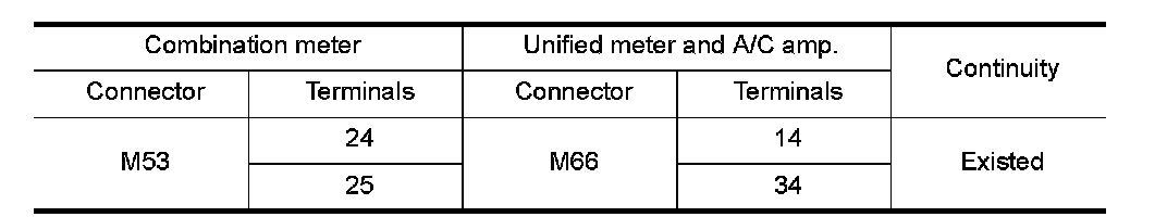 3.Check continuity between combination meter harness connector terminal and unified meter and A/C amp.