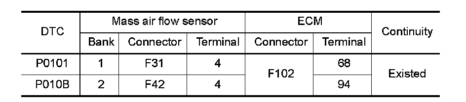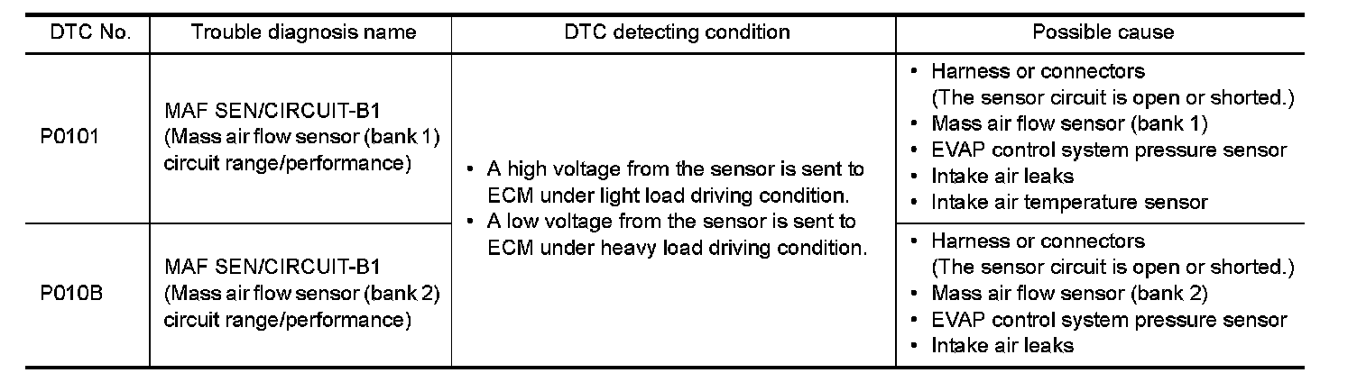If DTC P0101 or P010B is displayed with other DTC, first perform the trouble diagnosis for other DTC.
