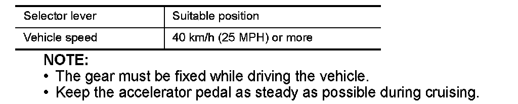 2.Drive the vehicle for at least 5 seconds under the following conditions: