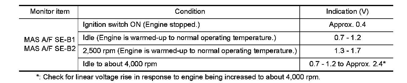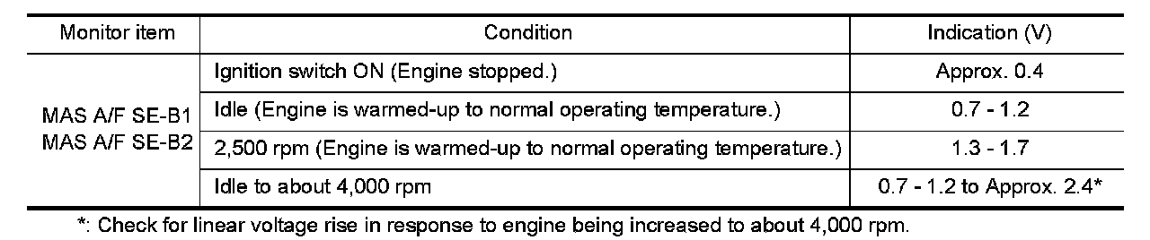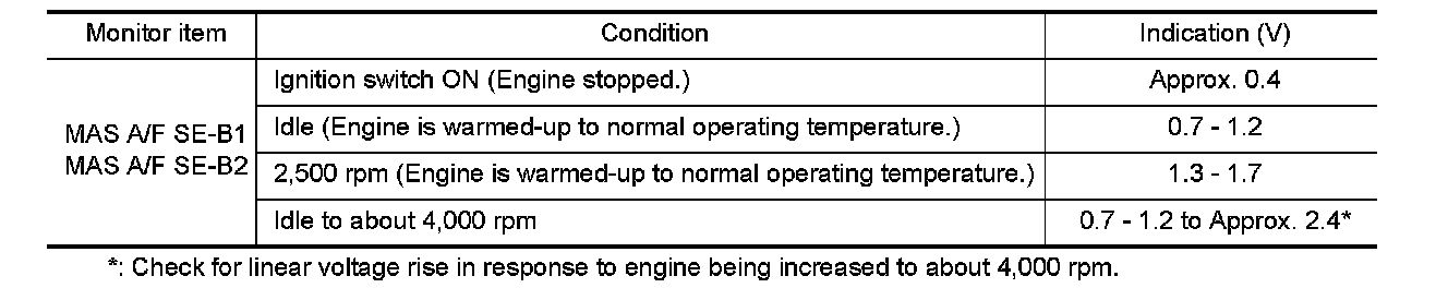 4.Select "MAS A/F SE-B1" and "MAS A/F SE-B2", and check the indication.