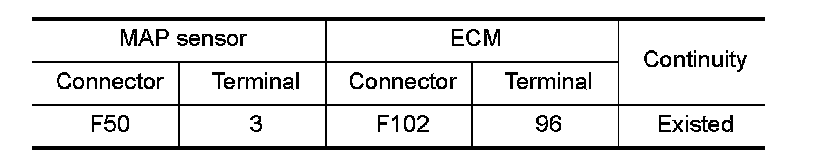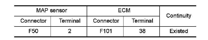 1.Check the continuity between MAP sensor harness connector and ECM harness connector.