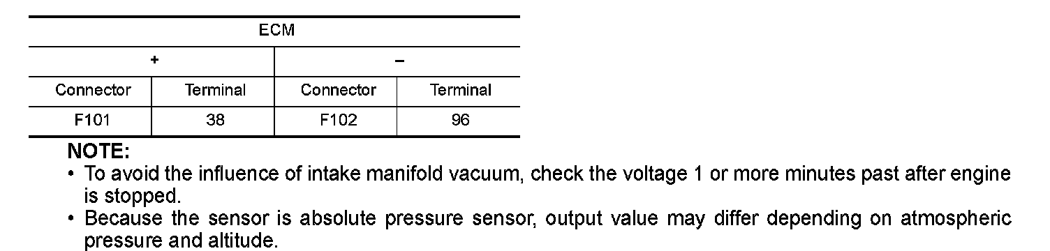 - To avoid the influence of intake manifold vacuum, check the voltage 1 or more minutes past after engine is stopped.