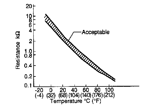The intake air temperature sensor is built-into the mass air flow sensor (1). The sensor detects intake air temperature and transmits a signal to the ECM.