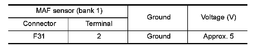 3.Check the voltage between mass air flow sensor (bank 1) harness connector and ground.