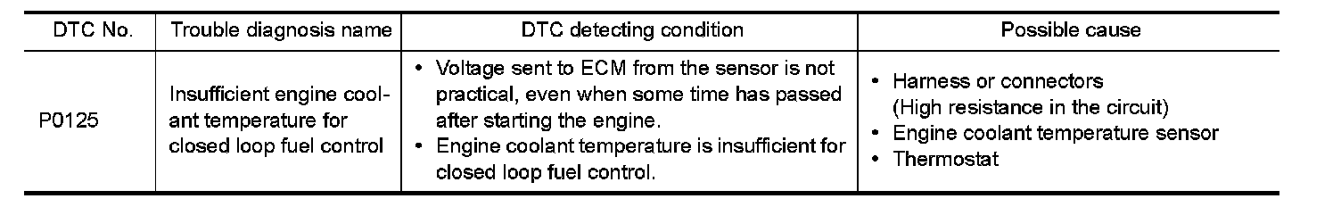 If DTC P0125 is displayed with P0117 or P0118, first perform the trouble diagnosis for DTC P0117 or