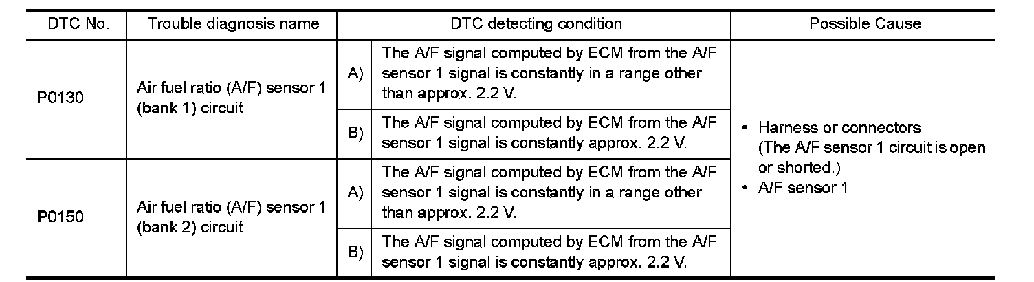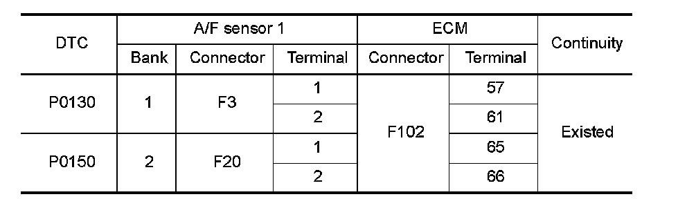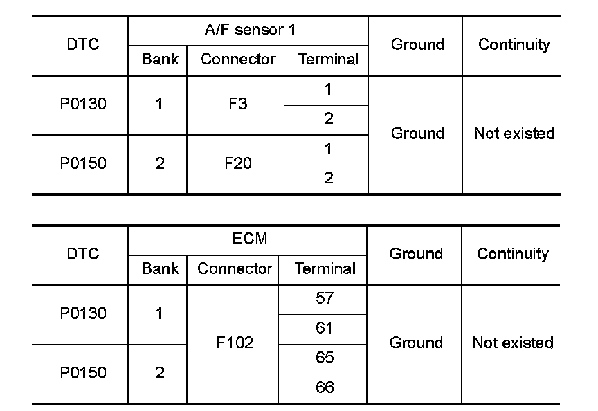 P0130, P0150 A/F SENSOR 1
