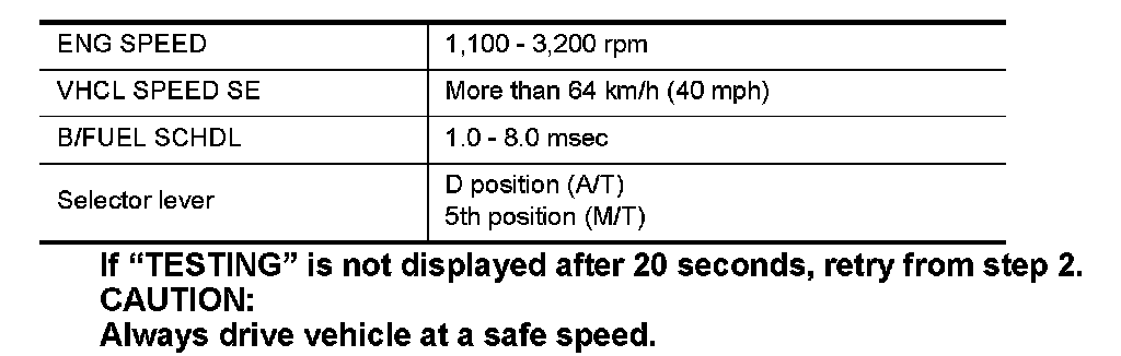 3.When the following conditions are met, "TESTING" will be displayed on the CONSULT screen.
