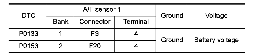 3.Check the voltage between A/F sensor 1 harness connector and ground.