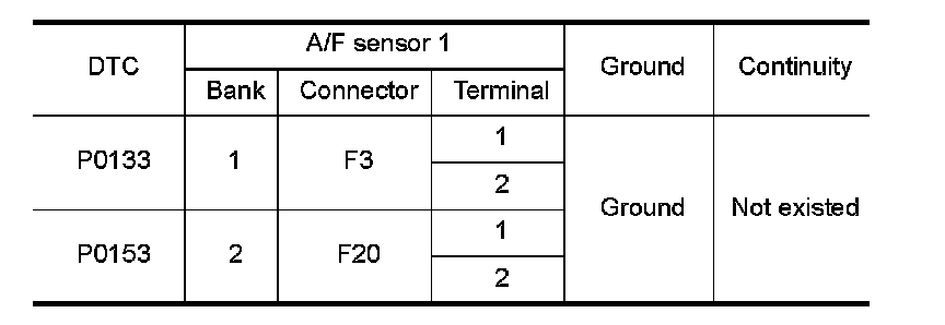 4.Check the continuity between A/F sensor 1 harness connector and ground, or ECM harness connector and ground.