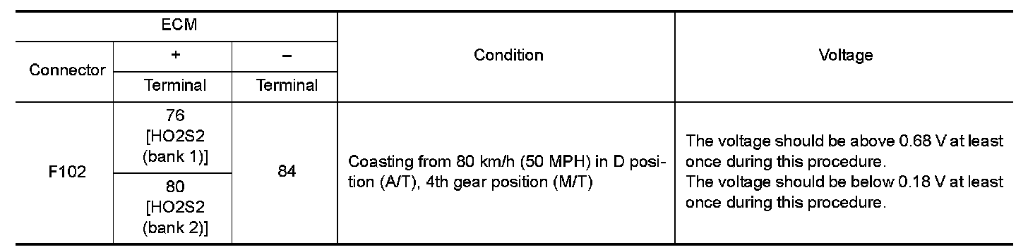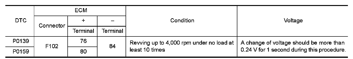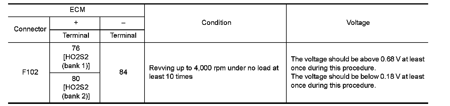 2, ECM monitors whether the switching response of the sensor's voltage is faster than specified during various driving conditions such as fuel cut.