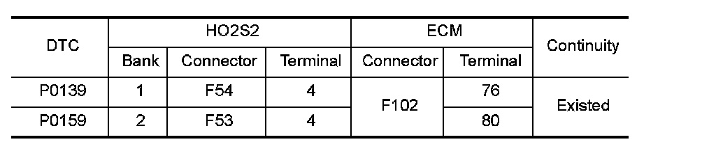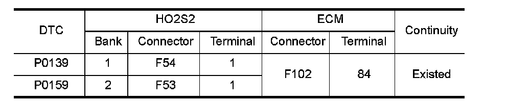 1.Check the continuity between HO2S2 harness connector and ECM harness connector.