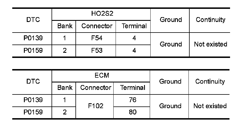 2.Check the continuity between HO2S2 harness connector and ground, or ECM harness connector and ground.