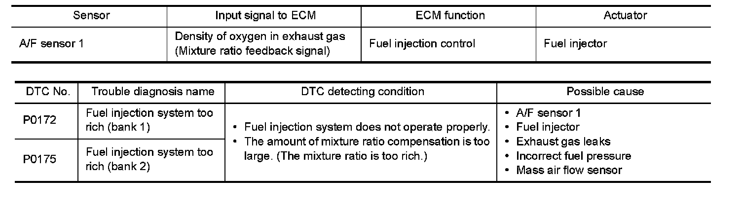 P0172, P0175 FUEL INJECTION SYSTEM FUNCTION