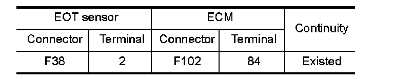3.Check the continuity between EOT sensor harness connector and ECM harness connector.