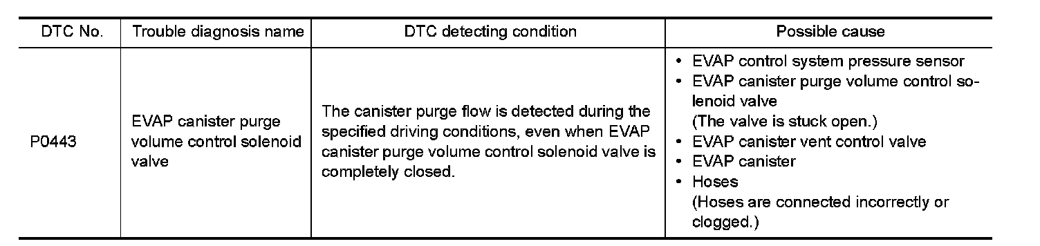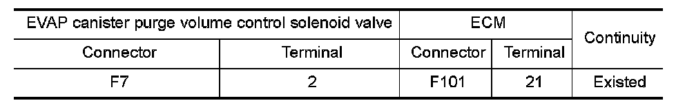 - Harness for open or short between EVAP canister purge volume control solenoid valve and ECM