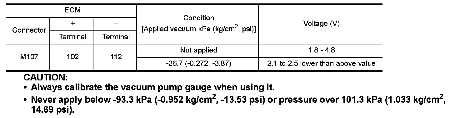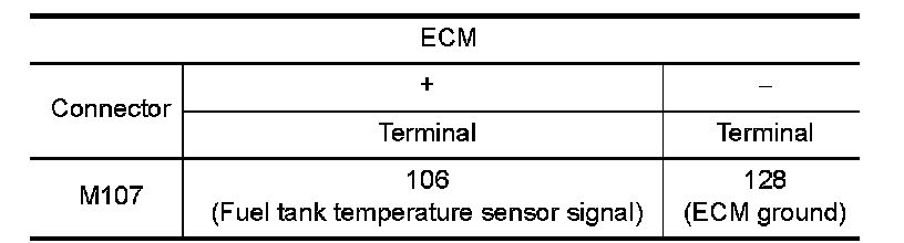 4.Turn ignition switch ON and check output voltage between ECM harness connector terminals under the following conditions.