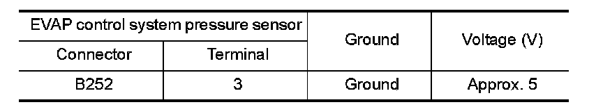 2.Check the voltage between EVAP control system pressure sensor harness connector and ground.
