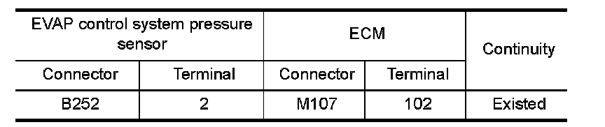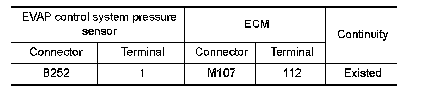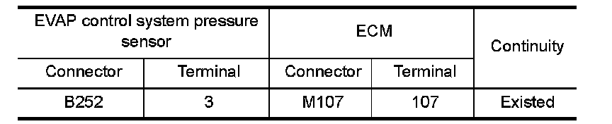 1.Check the continuity between EVAP control system pressure sensor harness connector and ECM harness connector.