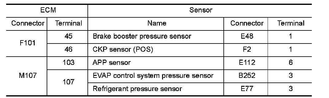 2.Set voltmeter probes to ECM harness connector terminals as per the following.
