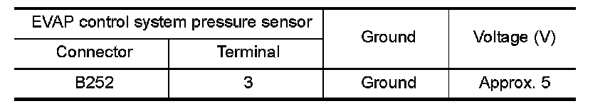 2.Check the voltage between EVAP control system pressure sensor harness connector and ground.