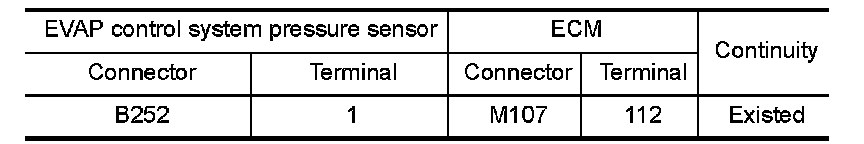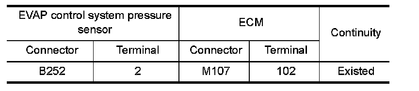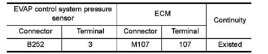 1.Check the continuity between EVAP control system pressure sensor harness connector and ECM harness connector.