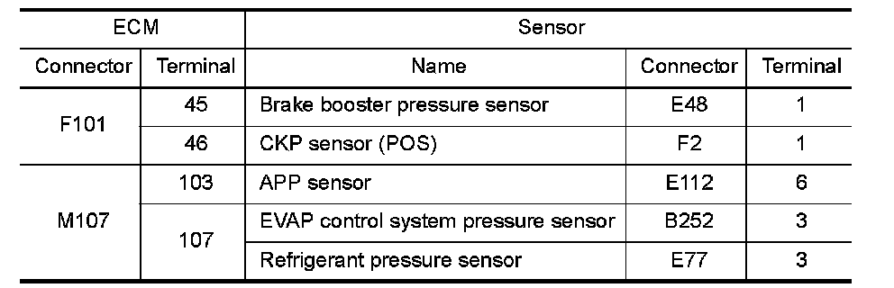 2.Set voltmeter probes to ECM harness connector terminals as per the following.