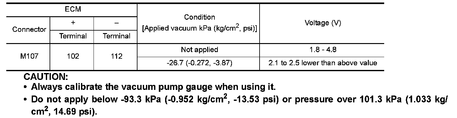 4.Turn ignition switch ON and check output voltage between ECM harness connector terminals under the following conditions.