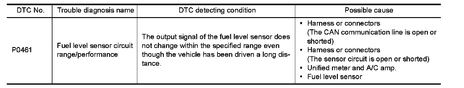 -If DTC P0461 is displayed with DTC UXXXX, first perform the trouble diagnosis for DTC UXXXX.