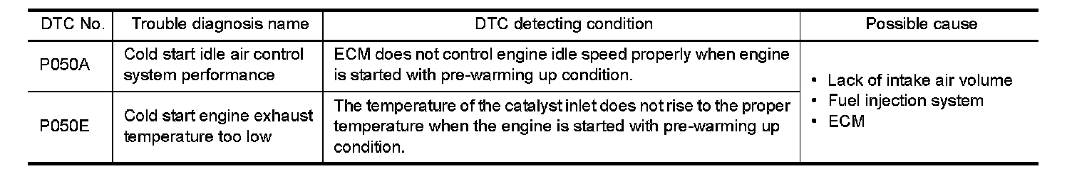 P050A, P050E COLD START CONTROL