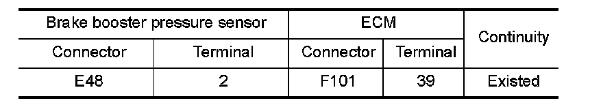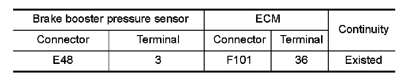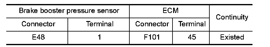 1.Check the continuity between brake booster pressure sensor harness connector and ECM harness connector.