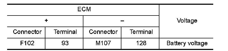 3.Check the voltage between ECM harness connector terminals as per the following.