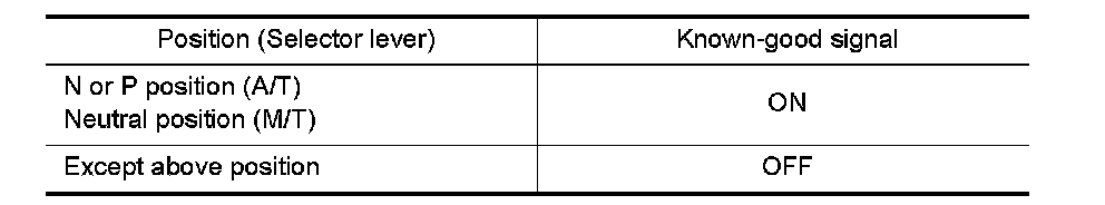 When the selector lever position is Neutral position, park/neutral position (PNP) switch is ON.(M/T models)
