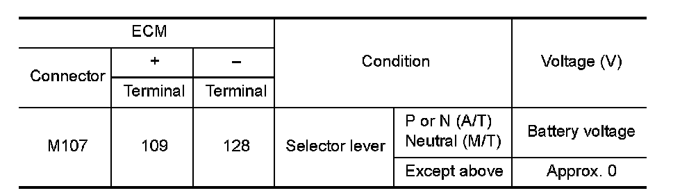 When the selector lever position is P or N, park/neutral position (PNP) signal from the TCM is sent to ECM.(A/
