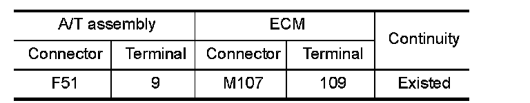 - Harness for open or short between A/T assembly and ECM