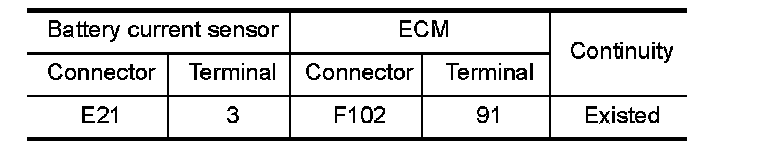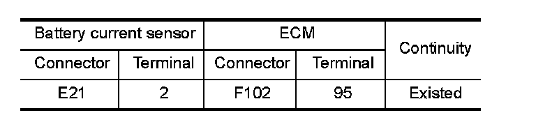 1.Check the continuity between battery current sensor harness connector and ECM harness connector.