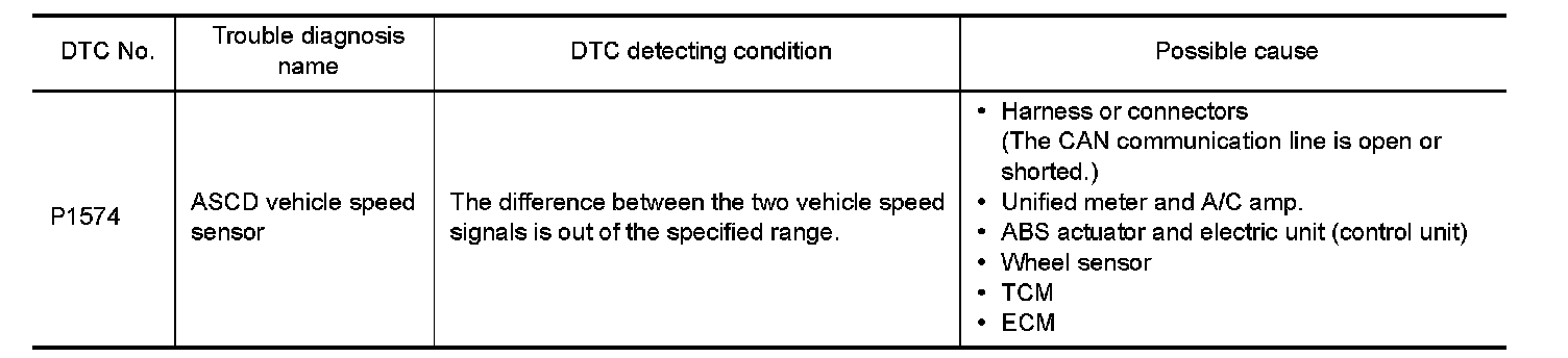 -If DTC P1574 is displayed with DTC P0500, first perform the trouble diagnosis for DTC P0500. Refer to "M/T MODELS : DTC Logic" P0500.