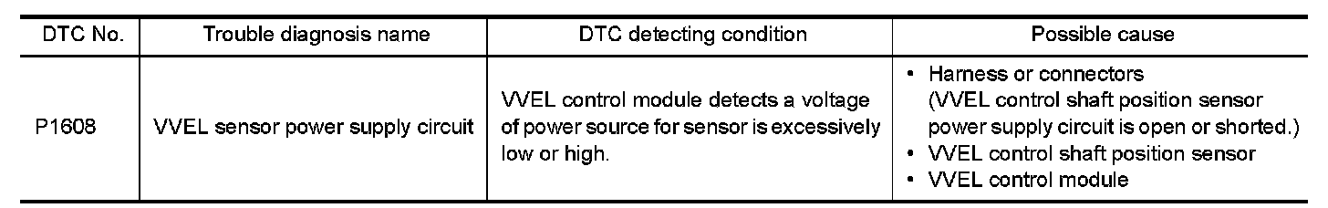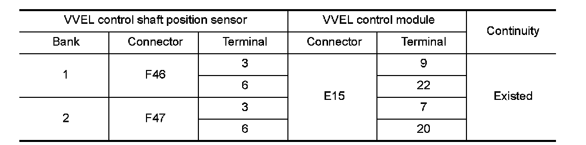 - Harness for open or short between VVEL control shaft position sensor and VVEL control module