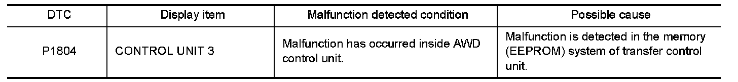 Replace AWD control unit when self-diagnostic results show items other than this DTC simultaneously, too.