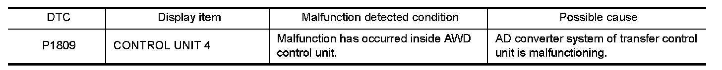 Replace AWD control unit when self-diagnostic results show items other than this DTC simultaneously, too.