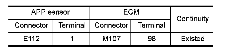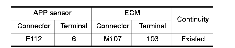 1.Check the continuity between APP sensor harness connector and ECM harness connector.