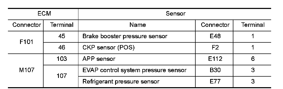 - EVAP control system pressure sensor (Refer to "Component Inspection" P0451.)