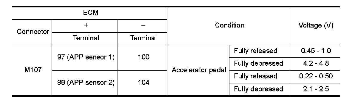 1.Disconnect accelerator pedal position (APP) sensor harness connector.