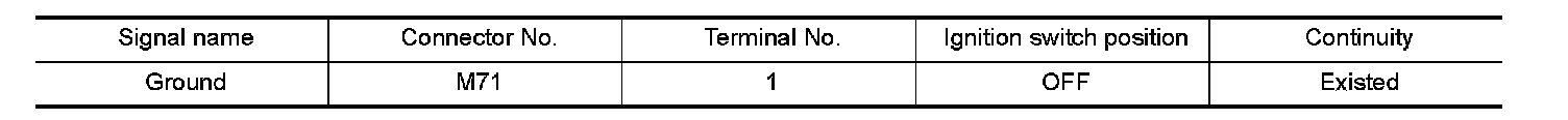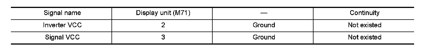 3.Check continuity between display unit harness connector M71 and AV control unit harness connector.