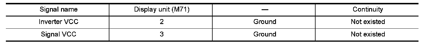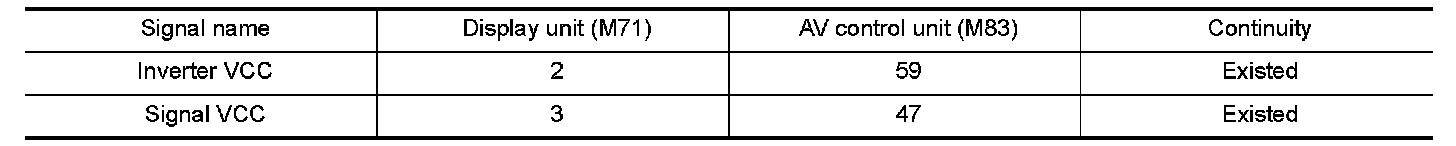 3.Check continuity between display unit harness connector M71 and AV control unit harness connector.