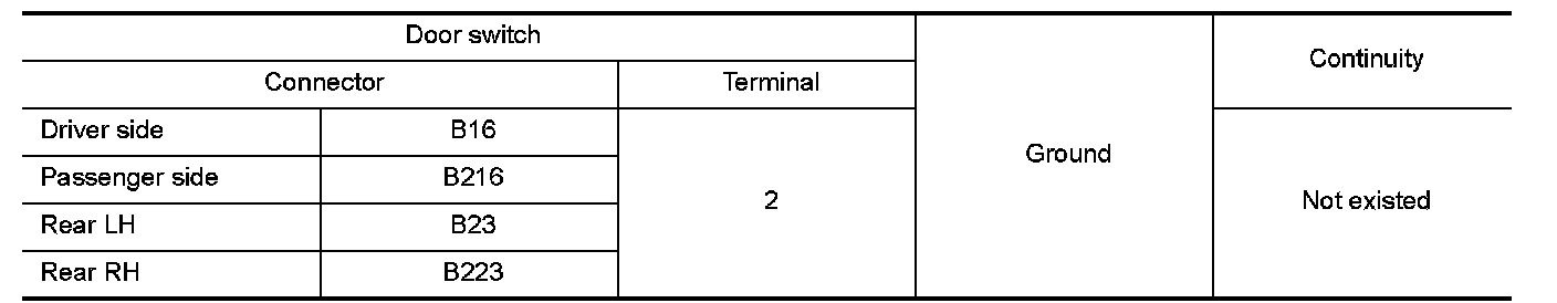 3.Check continuity between door switch harness connector and ground.