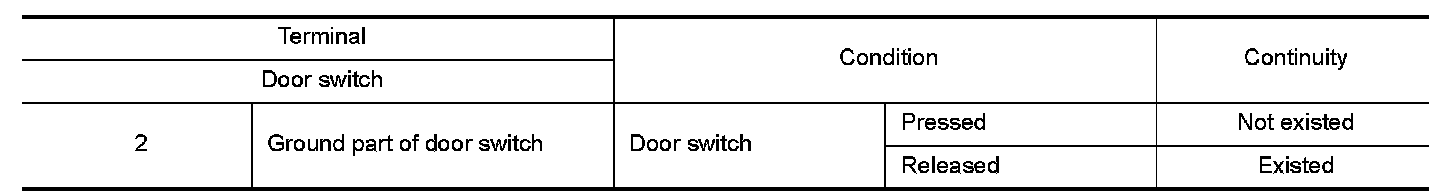 3.Check continuity between door switch terminals.