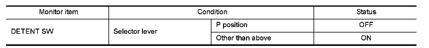 2.Select "DETENT SW" signal in "Data monitor" mode using CONSULT.
