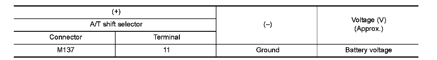 4.Check voltage between A/T shift selector harness connector and ground.
