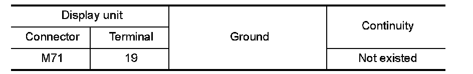 4.Check continuity between display unit harness connector and ground.